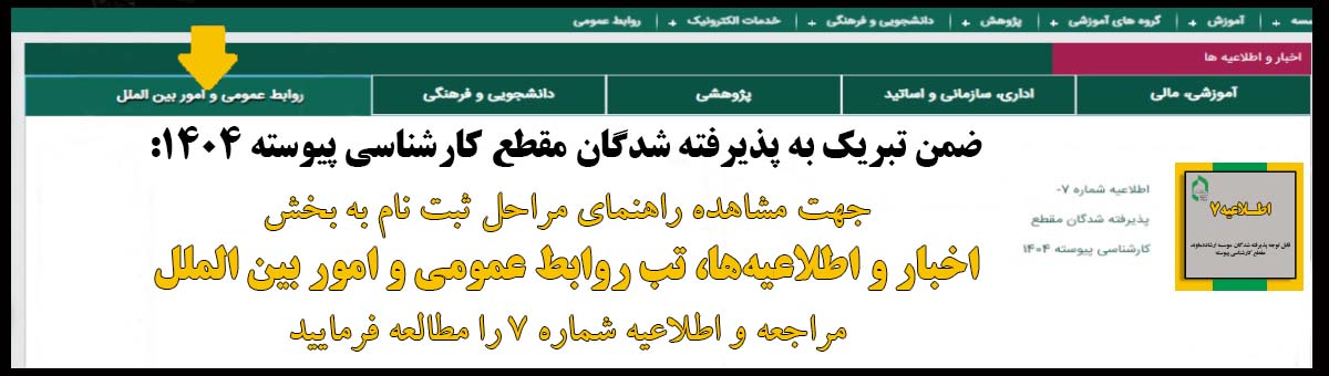 اطلاعیه شماره 7- پذیرفته شدگان مقطع کارشناسی پیوسته 1404