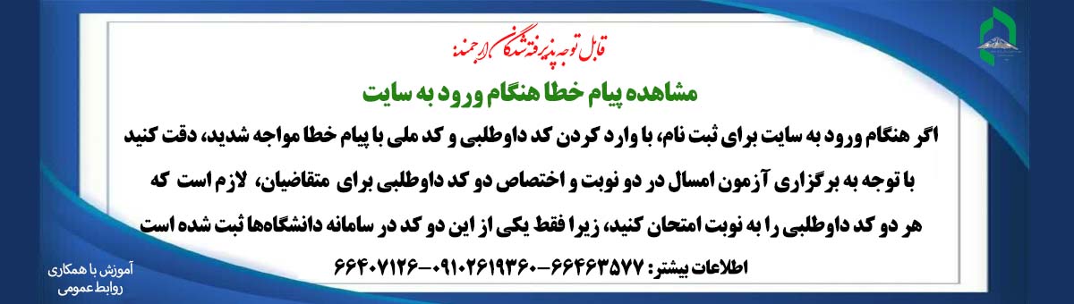 مشاهده پیام خطا هنگام تایپ نمودن کد داوطلبی جهت ورود به سایت