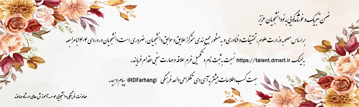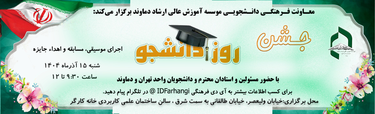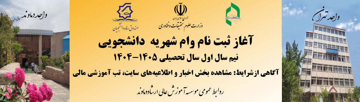 دانشجویان واحد دماوند، جهت اطلاع از آخرین اخبار به تَب اخبار واحد دماوند در بخش اخبار و اطلاعیه ها مراجعه نمایند.