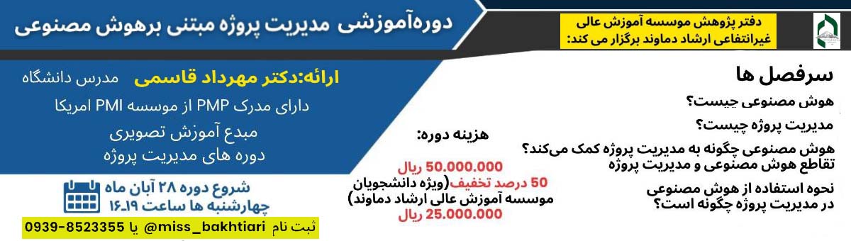 اطلاعیه شماره 58- دوره آموزشی مدیریت پروژه مبتنی بر هوش مصنوعی - ویژه کلیه دانشجویان علاقمند
