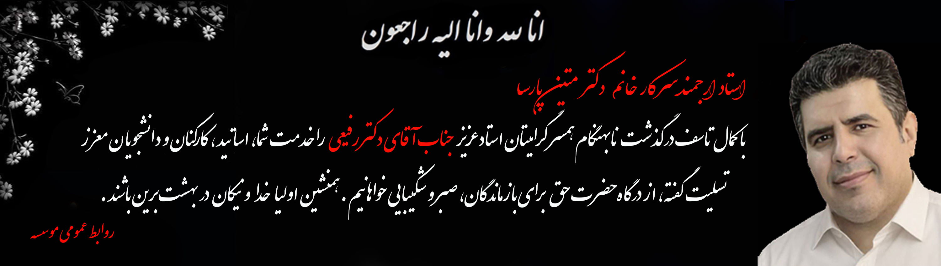 استاد شریف و فرهیخته موسسه جناب آقای دکتر رفیعی صبح دوم بهمن ۱۴۰۴، در اثر سکته، به لقاءالله شتافتند 🖤