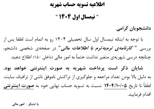 اطلاعیه شماره 7 روابط عمومی- پذیرفته شدگان مقطع کارشناسی پیوسته 1404