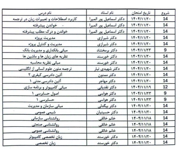 اطلاعیه شماره 328- طبق اطلاعیه استانداری استان تهران و با توجه به برودت هوا امتحانات روز شنبه 4 بهمن ماه 1404 لغو گردید - ادامه خبر
