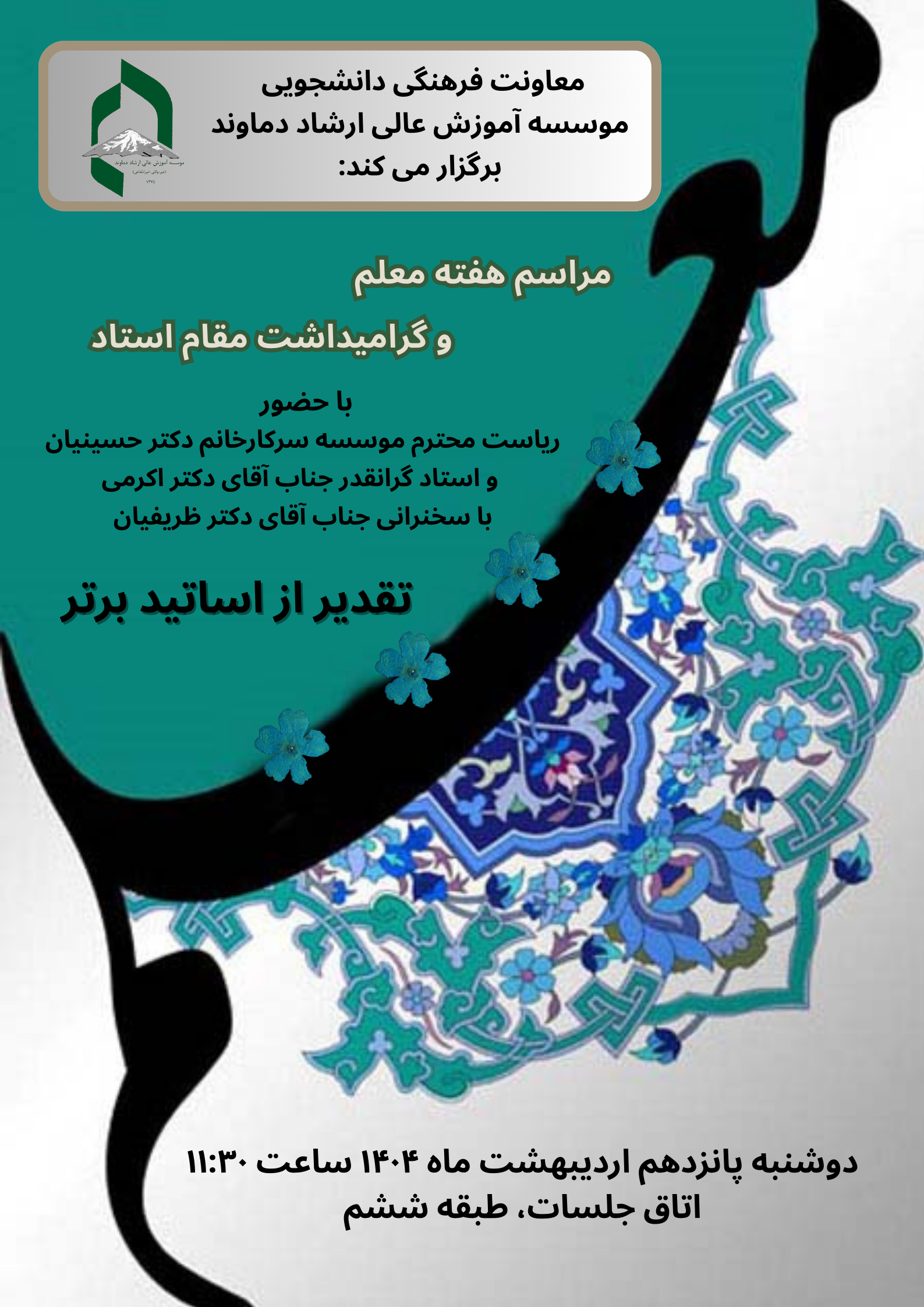 اطلاعیه شماره 101-مراسم هفته معلم و گرامیداشت مقام استاد